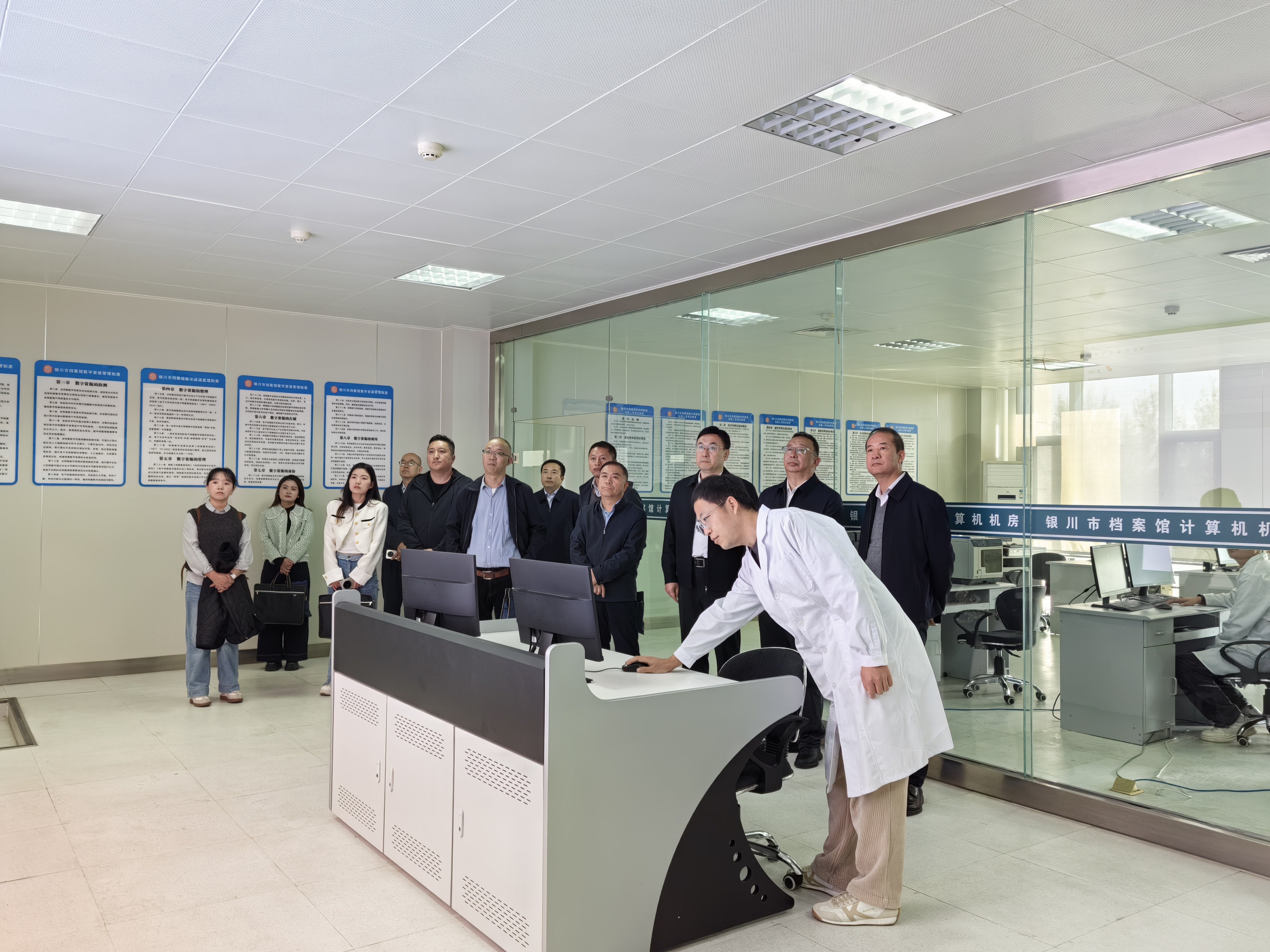 调研组先后到我馆计算机房、银川移民展厅、查档大厅、异地备份中心、数字化工作室,调研了解银川市档案馆在民生档案利用、数字档案馆建设、档案安全管理、编研开发及爱国主义教育基地建设等情况。