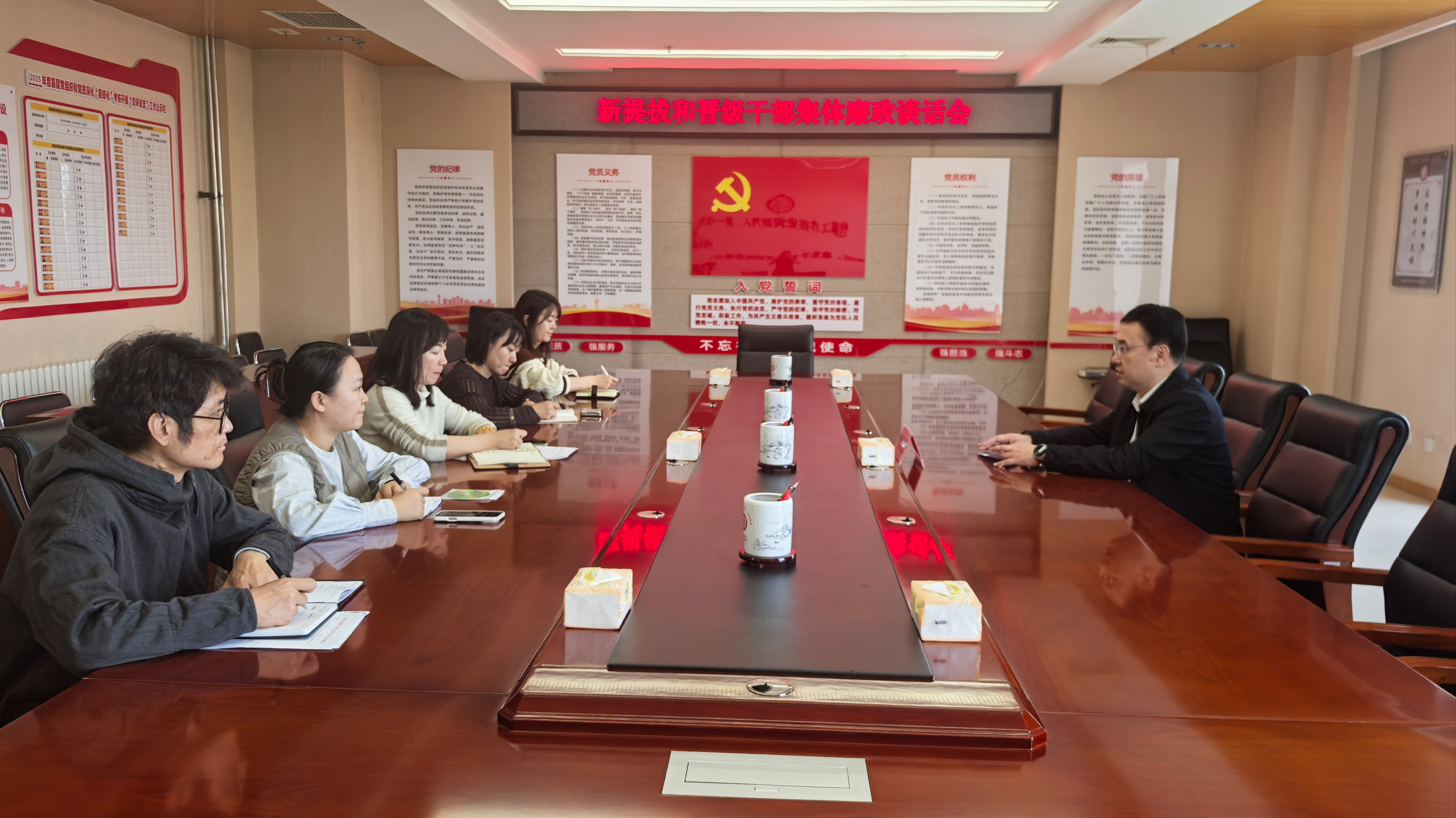 为切实加强干部队伍建设,教育引导新任职和晋级干部筑牢纪律规矩意识和廉洁自律防线,10月24日上午,银川市档案馆(地方志研究室)组织召开新任职和晋级干部任前集体廉政谈话会。馆长(主任)马利剑主持会议并提出廉洁履职要求。