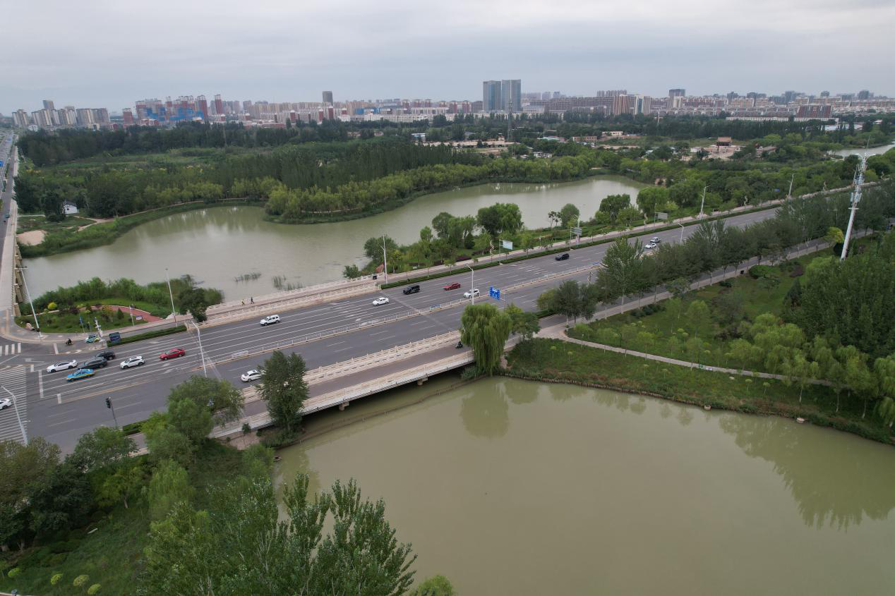 城市发展的步履不断向前,如今这些老庄子、老渠流,已经日渐融入城市的怀抱。2003年典农河主河道开工建设,河道与城市防洪体系规划相结合,形成新的治水思路,在治水中体现人与自然的和谐共处。典农河银川段水道设计宽度为50~300米,途中串联大小西湖、北塔湖、华雁湖和宝湖等众多湖泊湿地。2004年,银川第二条十车道马路亲水大街正式通车。当时这条南端起点还是宝湖路的通衢大道,跨越崭新的典农河水道的第一座桥梁,即是亲水桥。