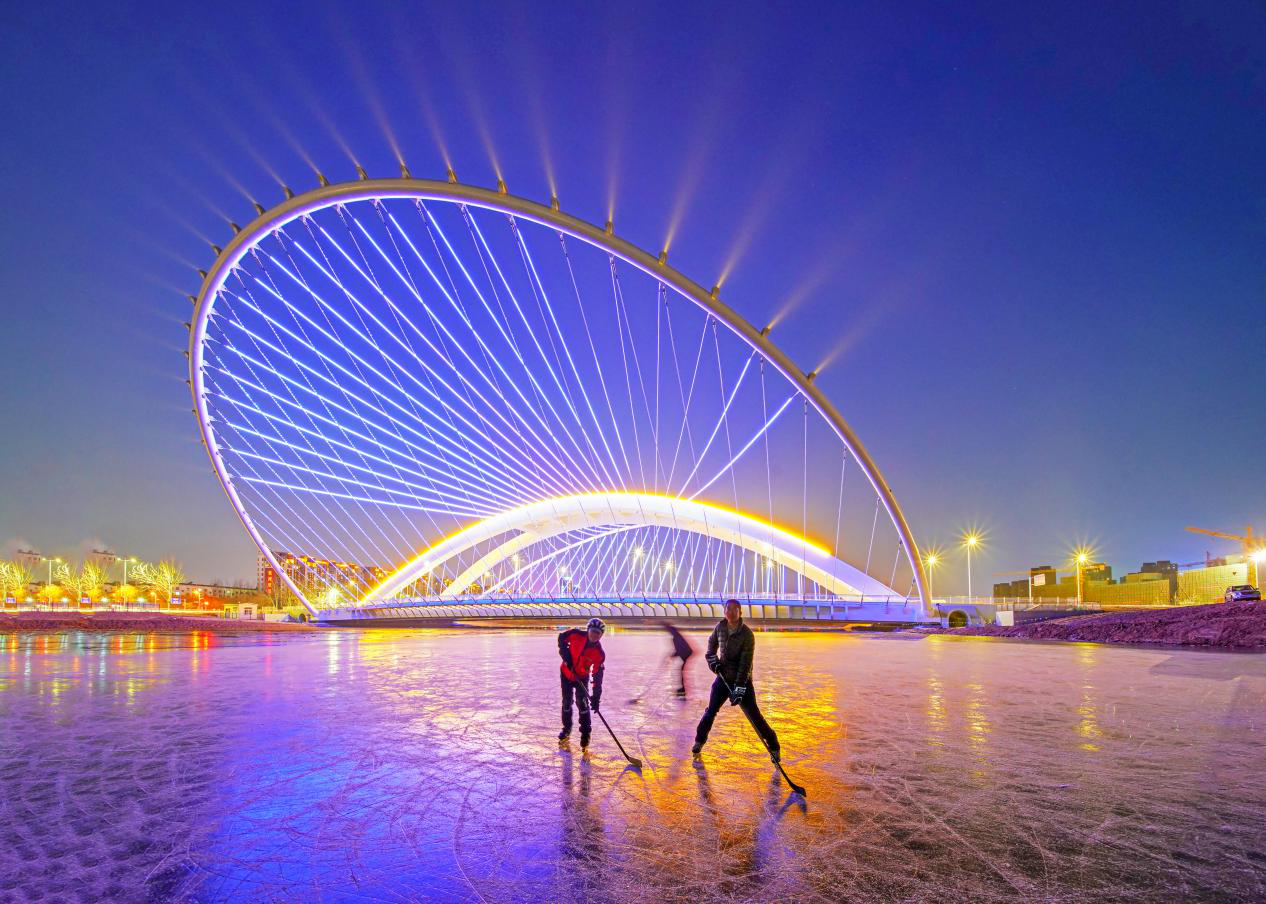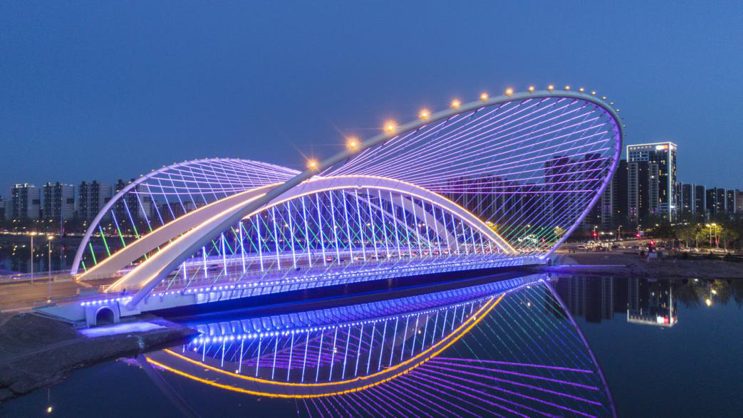 2019年1月2日晚,凤凰桥亮化灯光首次亮起,内外拱水平拉索采用蓝色主体灯光,两片外倾主拱拉索采用七彩闪光灯带。凤凰桥,银川市一道亮丽的地标景观建筑,让凤凰之城的美丽传说,以桥梁的形式具象落地。